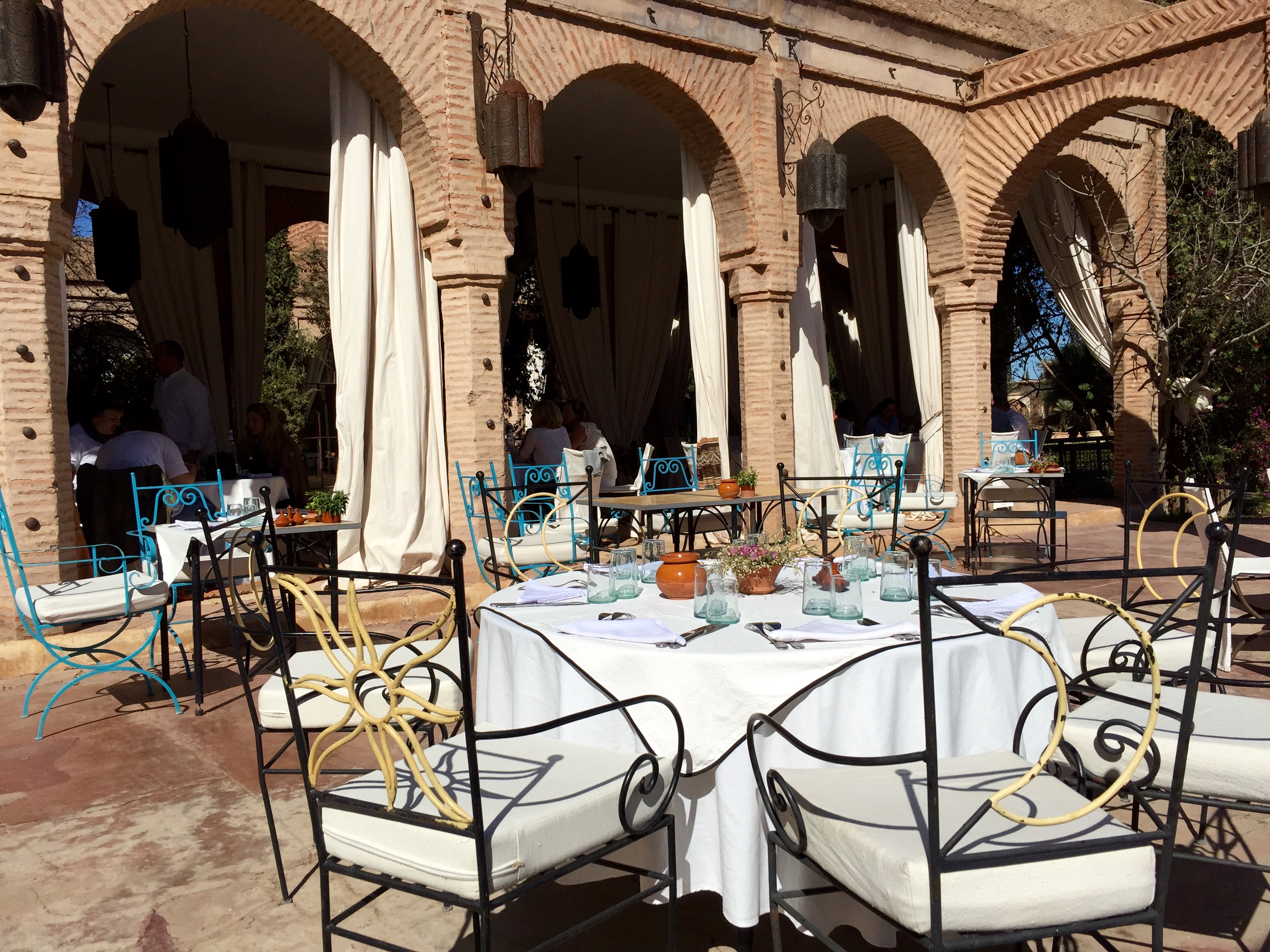 After our Saharan adventure (check back for Magical Morocco Part 3: Sahara soon), we decided to spend one more day in Marrakech lounging at the French chic Beldi Country Club on the outskirts of the city overlooking the Atlas Mountains. We wandered the luscious grounds featuring rose gardens, an oasis of olive trees and four palm tree-lined pools before lunching on oysters, mussels and mojitos in over-sized straw hats on their sun patio. We lazily ventured over to the spa for an afternoon in hammams (a steam room where we were scrubbed clean of dead skin from head to toe and our hair washed with oil) before our massages. Relaxed, and remarkably clean of any remnants of the desert, we happily boarded our plane for Spain.